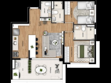 Área Total: 115m² (R$ 7.598/m²)Área Privativa: 75m²