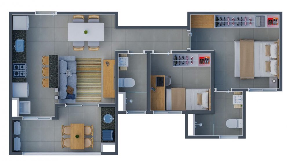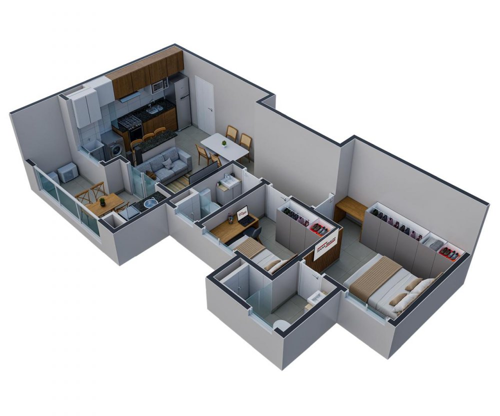 Viva momentos inesquecíveis em apartamentos de 2 ou 3 dormitórios, todos com suíte e uma espaçosa sala integrada à varanda gourmet com churrasqueira a carvão. Além disso, o Sou Special Place oferece infraestrutura para ar-condicionado e áreas de convivência