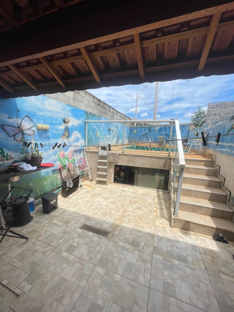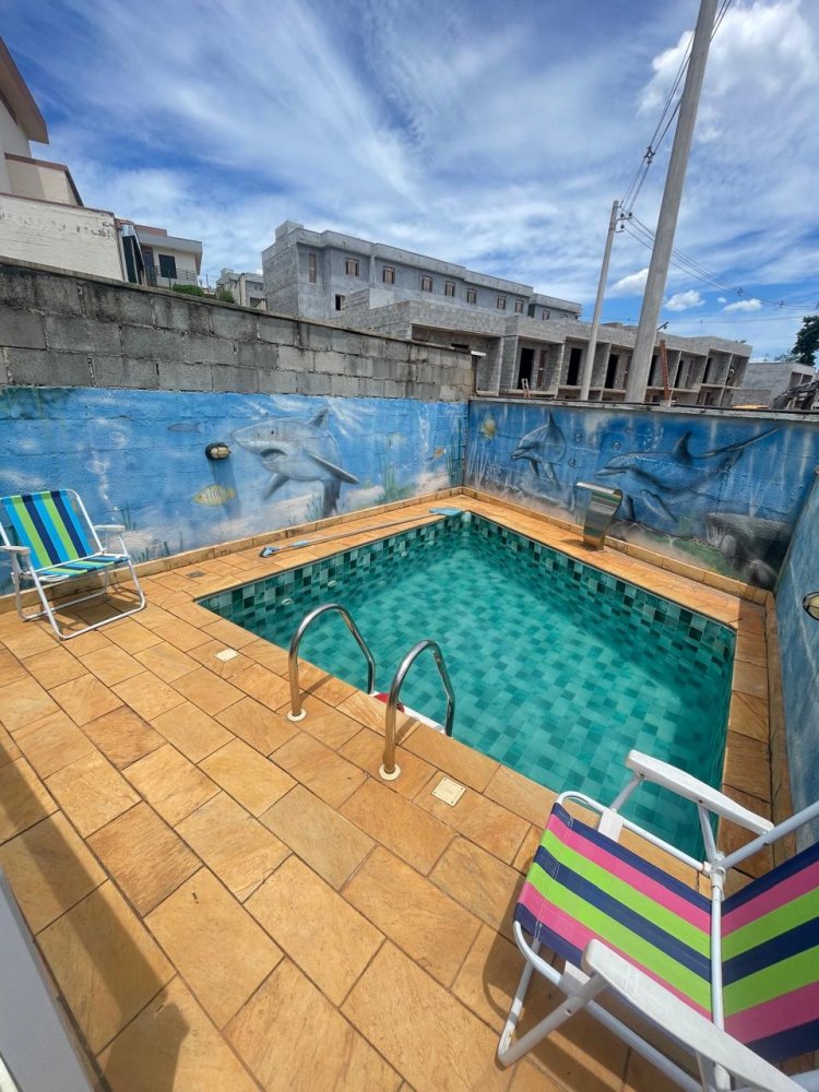 Casa de 2 dormitorios,1 sala,cozinha estendida semi imobiliada tem um quintal grande com uma piscina privativa