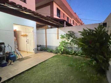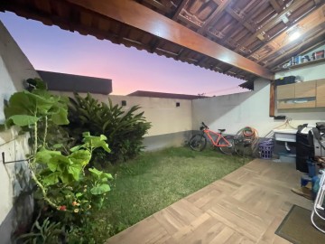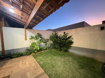 Logo ao atravessar o portão, um corredor lateral revela o charme natural do lugar: cinco pés de Lírios da Paz adornam o caminho, trazendo beleza e serenidade logo na chegada. No quintal, o verde predomina — gramado bem cuidado, plantas que florescem ao longo do ano e dois pés de couve que ainda oferecem sabor e saúde, como na rotina dos antigos moradores.
