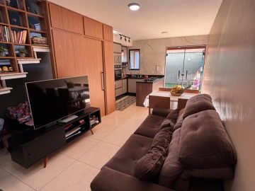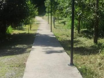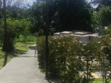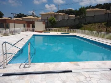 Tem uma area verde,arvores futiferas pista de caminha, campo,quadra,piscina e 2 salões de festas
