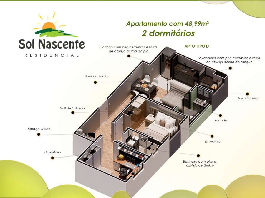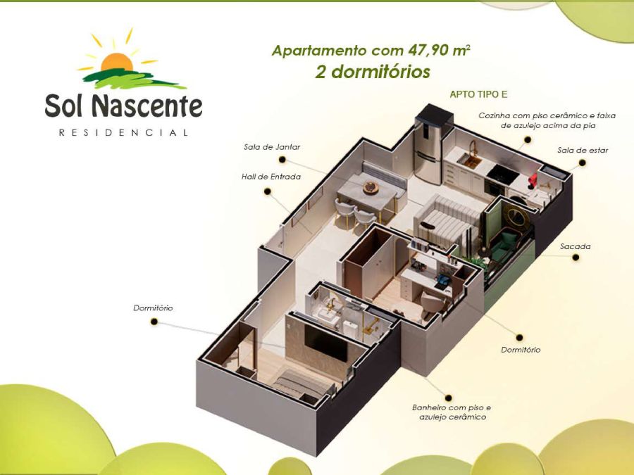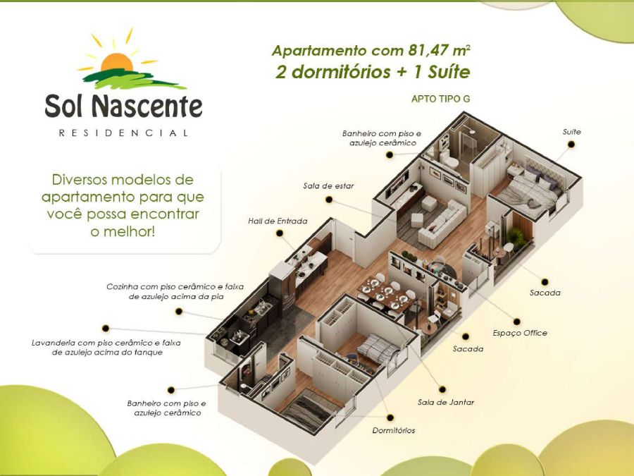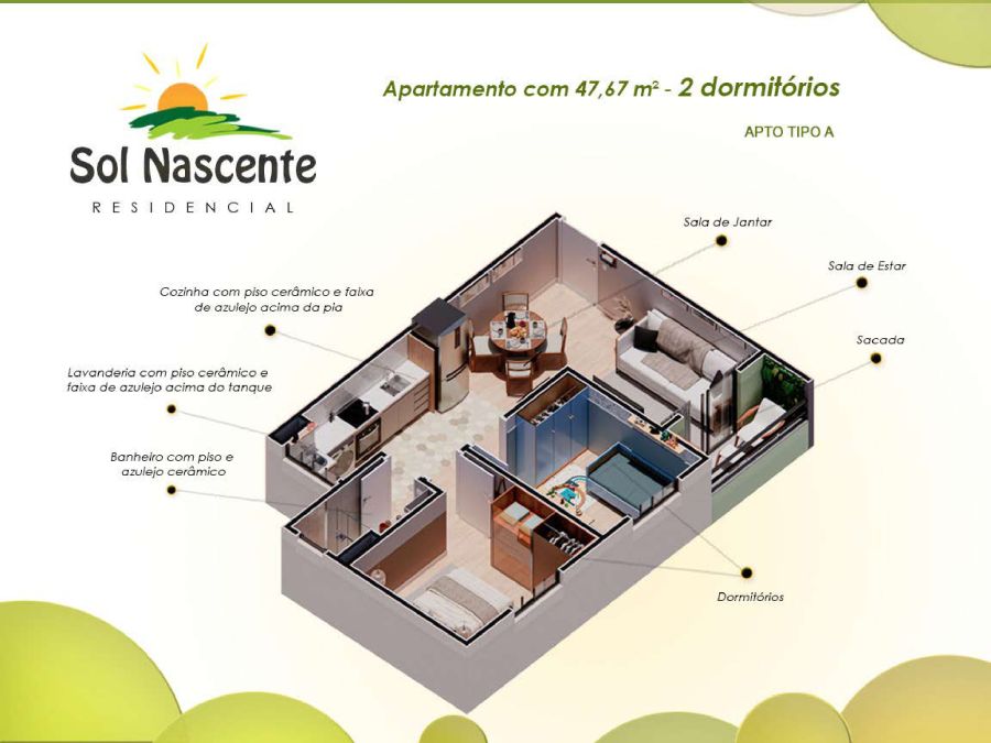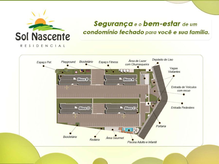 O Residencial Sol Nascente foi pensado para proporcionar o máximo de conforto e lazer aos seus moradores. Desfrute de: