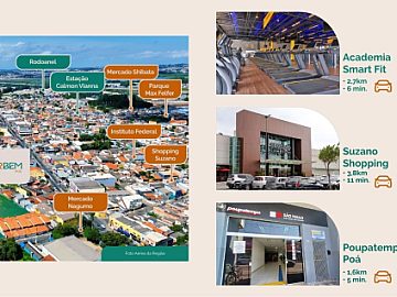 A localização estratégica é um diferencial, com fácil acesso a açougues, feiras, supermercados, escolas (públicas e particulares), faculdade, farmácias e hospitais. A proximidade com estações de trem, pontos de ônibus e importantes vias da cidade garante mobilidade e conveniência no dia a dia. Além disso, você estará a poucos minutos de hipermercados renomados como Assai, Atacadão, Semar e Shibata, além do Shopping e de diversas opções de lazer e gastronomia, como o Beat Clube Suzano e o Restaurante Sushi Banana.
