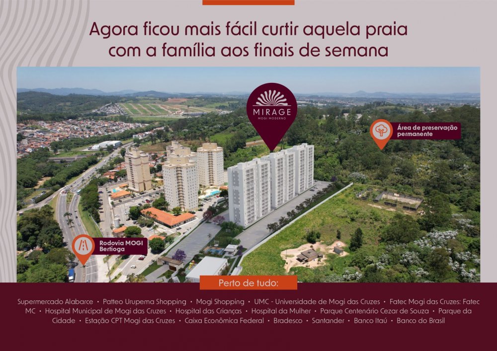 Os moradores também podem desfrutar de uma quadra poliesportiva para a prática de esportes, um espaço reservado para preparar churrascos e ainda uma área para festas. A localização é privilegiada, na região de mogi das cruzes com a facilidade de transporte público, já que ônibus e vans passam na porta do condomínio.