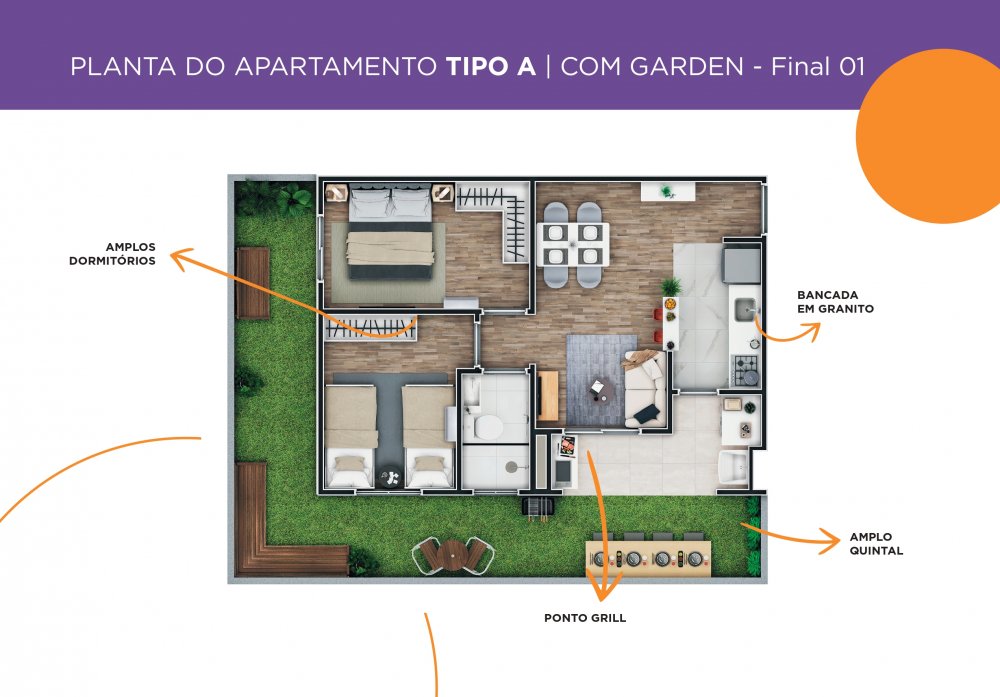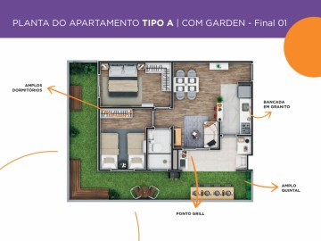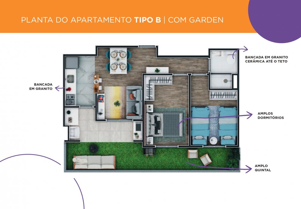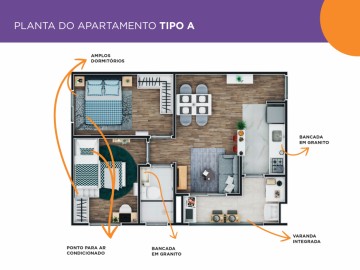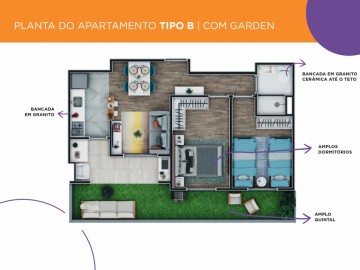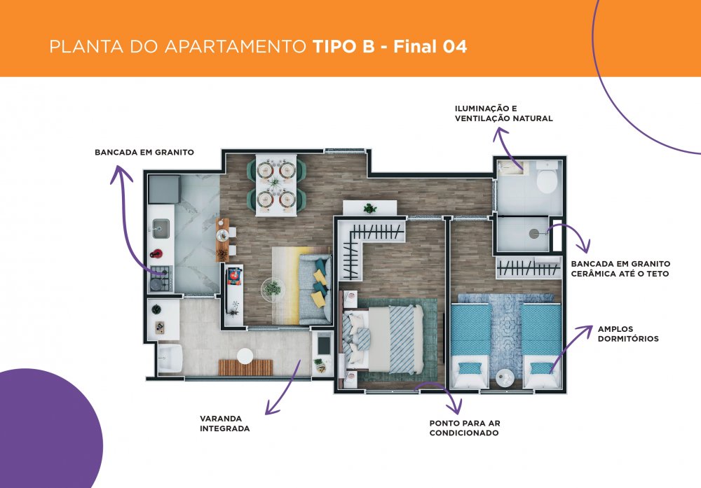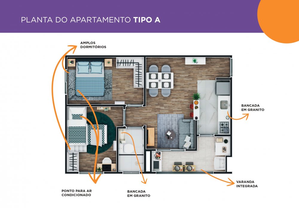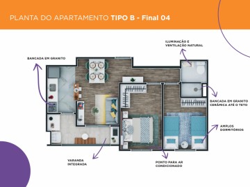 Nosso apartamento de 2 dormitórios é o refúgio ideal, com uma sala ampla, cozinha funcional integrada à varanda, área de serviço e um banheiro moderno. Tudo pensado para o seu bem-estar e comodidade.