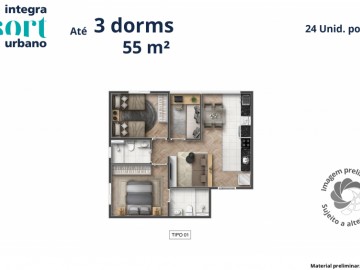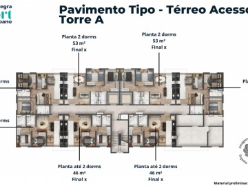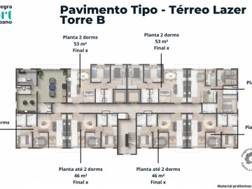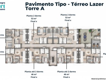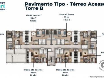 • 3 dormitórios - 53 m² (24 unidades por torre);