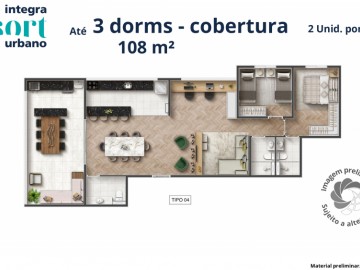 • Cobertura com 3 dormitórios - 108 m² (2 unidades por torre).