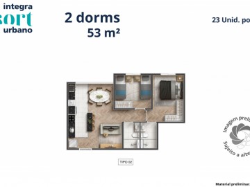 • 2 dormitórios - 55 m² (23 unidades por torre);