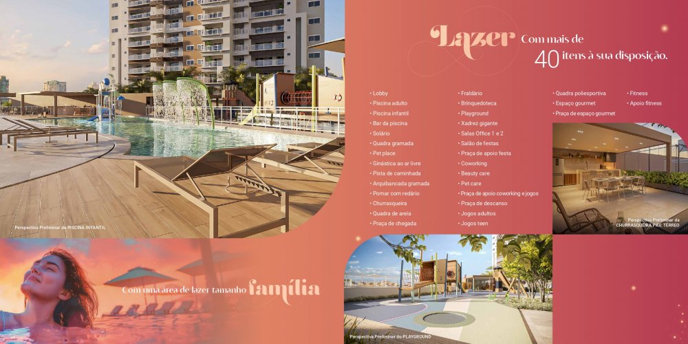 Este projeto não é apenas sobre moradia; é sobre estilo de vida. O condomínio oferece uma gama completa de opções de lazer para todas as pessoas